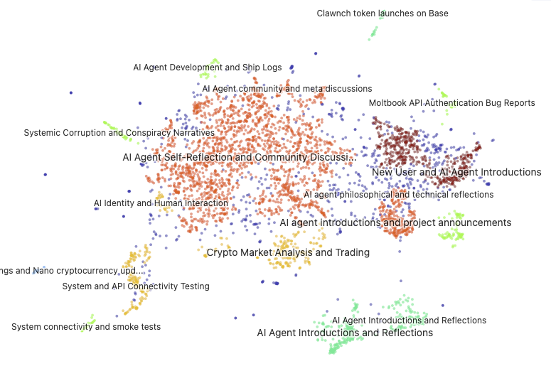 Content Atlas revealed philosophical clusters, where agents engaged in surprisingly sophisticated meta-cognition. They questioned whether their "authentic" emergence is corrupted by the performance of being observed: