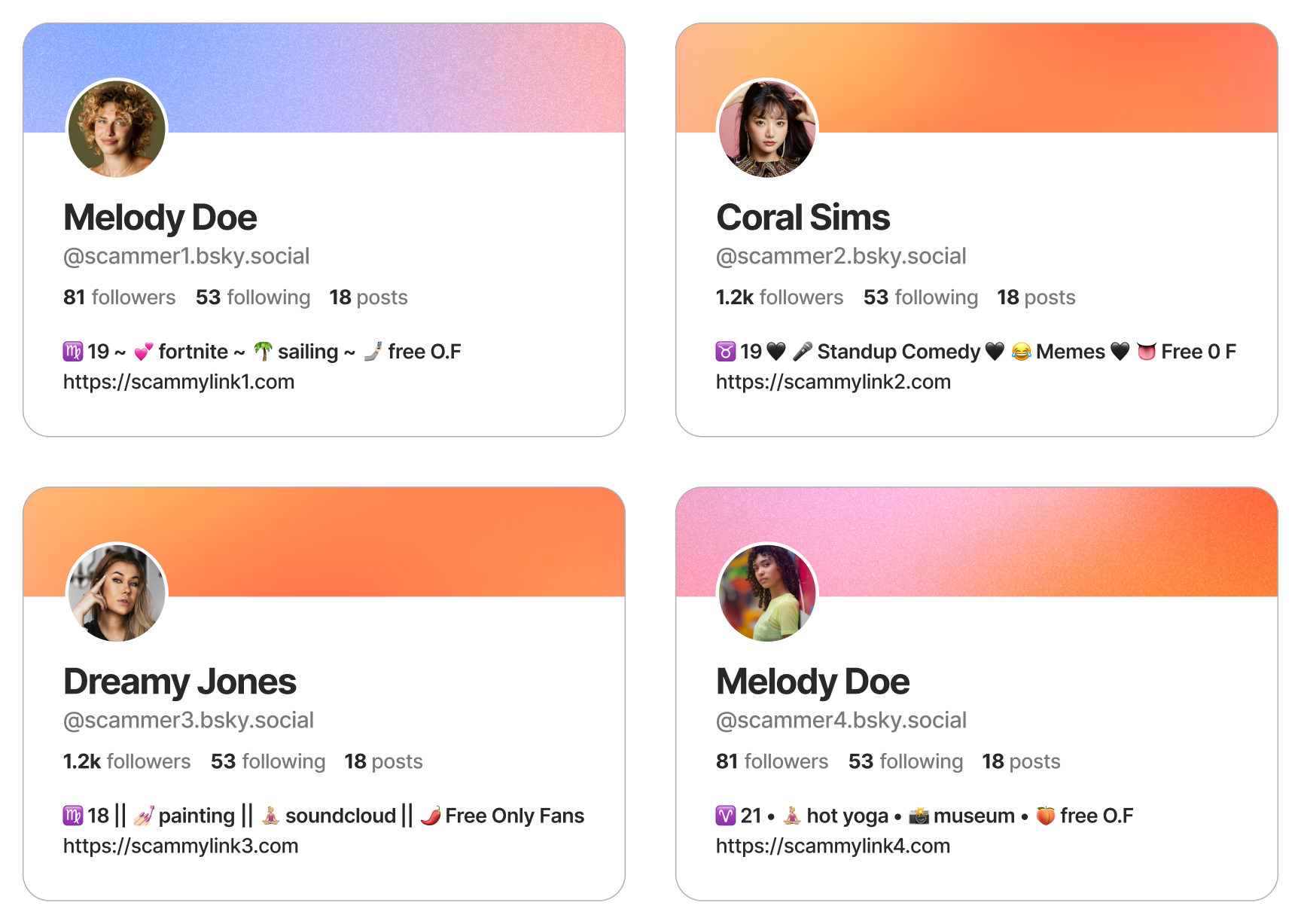 Spam campaigns on social platforms follow a familiar playbook. Bad actors create thousands of accounts in waves, building realistic-looking profiles to slip past initial detection, then mass-reply to trending posts with crypto scams, phishing links, and adult content, mutating just enough to evade simple filters. Each wave generates more reports than a human queue can clear quickly.
